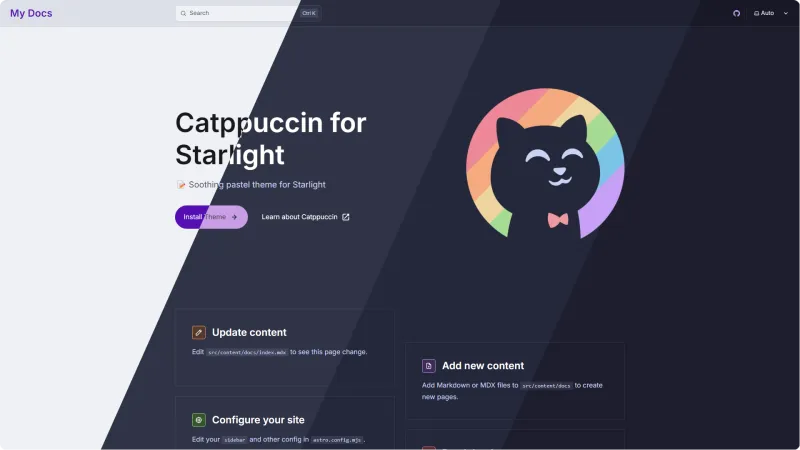 And, Otterlord’s Catppuccin for Starlight has been adopted as an official port! Soothing pastel docs for everyone!